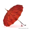 Umbrella ID 1237 | Solid Red Umbrella Carved Red Leaf Handle| Bella Umbrella | Vintage Umbrella Rentals