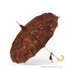 Umbrella ID 057 | Taupe Pagoda Umbrella with Black Stenciled Florals | Bella Umbrella | Vintage Umbrella Rentals