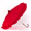 Umbrella ID 229 | Red Umbrella with Ruffle Trim | Wood Hook Handle | Bella Umbrella | Vintage Umbrella Rentals