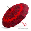 Umbrella ID 155 | Red Pagoda Umbrella with Black Vine and Leaf Pattern | Bella Umbrella | Vintage Umbrella Rentals