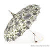 Umbrella ID 1182 | Ivory Pagoda with Silver and Gray Hand Painted Flowers | Ivory Hook Handle | Bella Umbrella | Vintage Umbrella Rentals