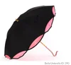 Umbrella ID 390 | Black Umbrella with Pink Scalloped Edge and Double Layer | Pink Hook Handle | Bella Umbrella | Vintage Umbrella Rentals