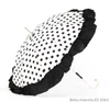 Umbrella ID 1061 | White Umbrella with Black Polka Dots and Black Ruffle | White Hook Handle | Bella Umbrella | Vintage Umbrella Rentals