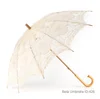 Umbrella ID 088 | Larger White Cotton Lace Parasol | Wooden Post Handle | Bella Umbrella | Vintage Umbrella Rentals