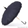 Umbrella ID 184 | Navy Ruffled Umbrella with White Polka Dots | Polka Dotted Handle | Bella Umbrella | Vintage Umbrella Rentals